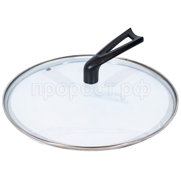 Крышка имеет отверстие для выхода пара и металлический ободок, который предохраняет крышку от механических повреждений. Крышка подходит для любой посуды диаметром 26 см.