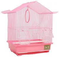 Полностью укомплектована необходимыми аксессуарами - кормушки, жердочки и качелька. Сложная крыша подчеркивает индивидуальность дизайна этой клетки.