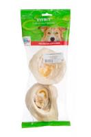 Высушенные основания говяжьих ушей (внутренняя часть раковины, обрамленная кольцом мышечной ткани). Упаковка содержит два внутренних уха. Высокое содержание коллагеновых и эластиновых волокон обеспечивает поступление в организм незаменимых компонентов для роста и поддержания качества хрящевой ткани суставов Вашего питомца. Высокое содержание коллагена и эластина способствует улучшению формирования ушного хряща для пород собак, стандартом которых предусмотрен вертикальный постав ушной раковины.